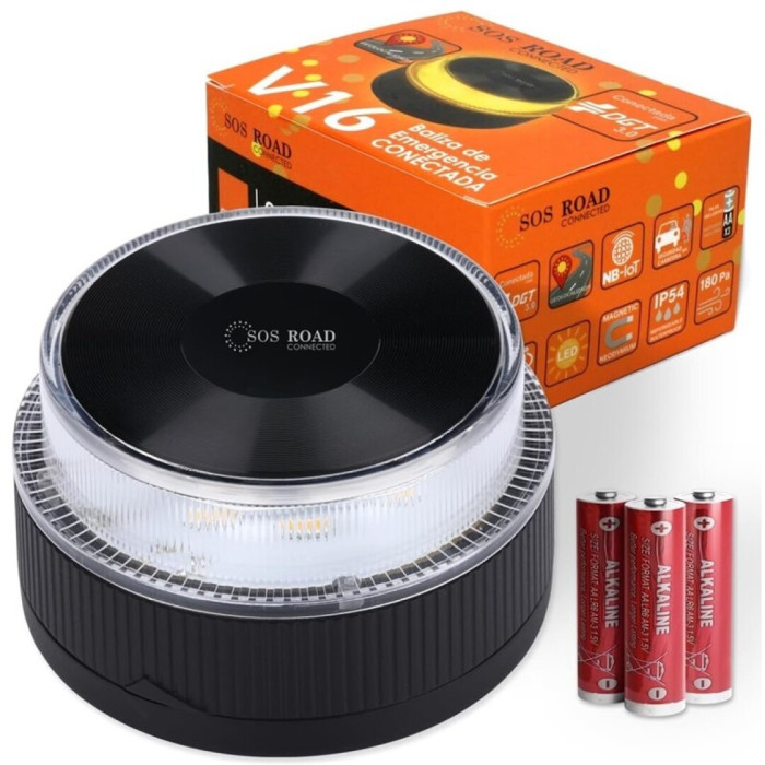 Dispositivo obligatorio en España a partir del año 2026. Baliza de emergencia conectada, inteligente y homologada por la DGT. Producto Certificado LCOE 2024070678G1 Transmisión automática de ubicación a la plataforma DGT 3.0 Geolocalización con conectividad NB-IoT segura, anónima por antena GNSS La baliza de emergencia conectada V16, envía la posición del vehículo averiado o accidentado a la DGT en tiempo real. Integra SIM conectada por Orange durante 12 años. eSIM válida hasta el 01/01/2038 Conexión SIN ALTAS, SIN GASTOS ADICIONALES. Activación directa e inmediata sin salir del vehículo. Activación manual mediante botón pulsador Servicios adicionales gratuitos, escanee el código QR pa